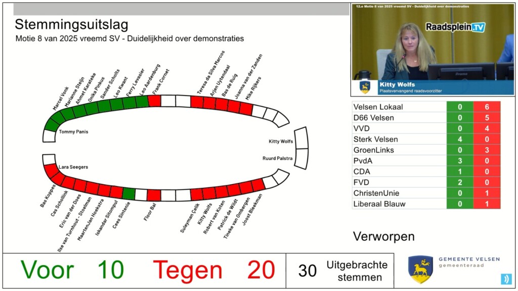 Motie 8 van 2025 vreemd SV – Duidelijkheid over demonstraties
