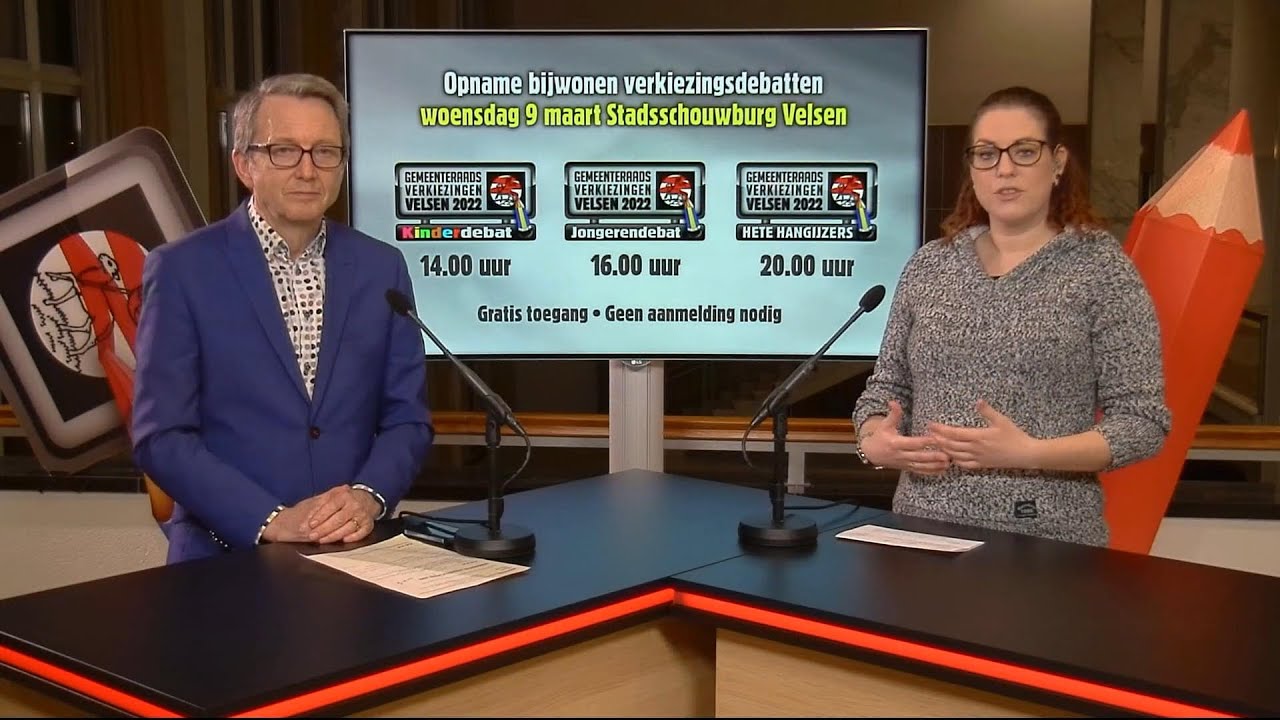 Op 9 maart vinden in de Stadsschouwburg Velsen TV-opnames van drie verschillende debatten plaats. De drie debatten kunnen live bijgewoond worden. Aanmelden is niet nodig, er is vrije inloop
